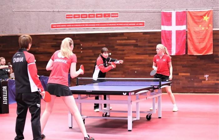 中丹乒乓球运动员交流互动。中国驻丹麦大使馆供图