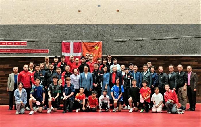 人民网斯德哥尔摩8月29日电(记者殷淼)当地时间 8月25日,中国国家乒乓球队在完成欧洲大满贯瑞典站赛事后,应邀来丹参加丹麦乒乓球协会与丹麦华人乒乓球总会举办的庆祝中丹建交75周年乒乓球友谊赛。中国驻丹麦大使王雪峰、国际乒联主席索琳、丹麦体协主席纳托普、中国乒协秘书长何潇、中丹国家乒乓球队队员及乒乓球爱好者约70人出席活动。