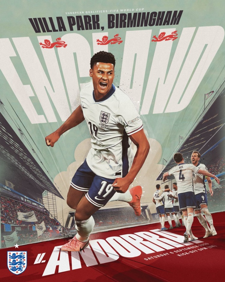 9月6日讯 北京时间9月7日凌晨0:00,世预赛欧洲区小组赛K组第5轮,英格兰vs安道尔。赛前,英格兰队官方发布赛前海报,主题球员为前锋沃特金斯。